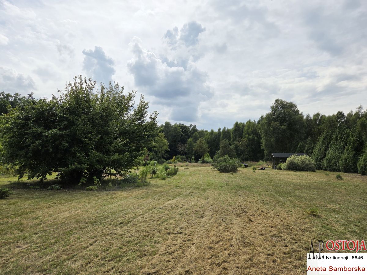 Działka z bezpośrednim zjazdem z drogi asfaltowej, częściowo zadrzewiona, z nasadzeniami owocowymi i ozdobnymi (jagoda kamczacka, borówka, jabłonie, wiśnie, leszczyny, bzy), na długości około 80 metrów- nasadzone tuje o wysokości około 3 m.