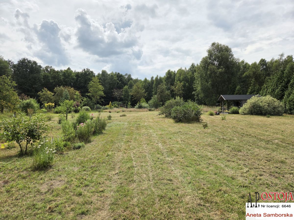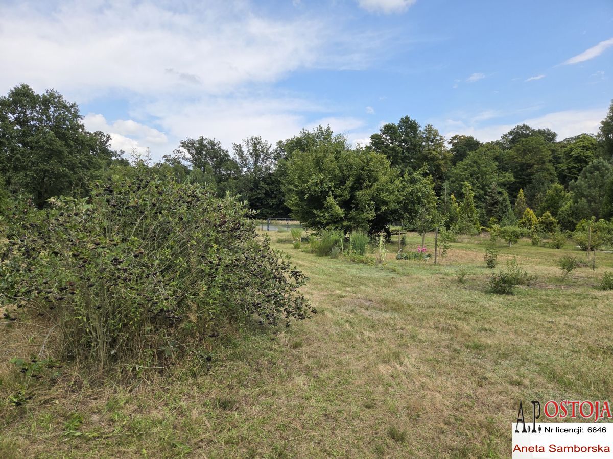 Działka z bezpośrednim zjazdem z drogi asfaltowej, częściowo zadrzewiona, z nasadzeniami owocowymi i ozdobnymi (jagoda kamczacka, borówka, jabłonie, wiśnie, leszczyny, bzy), na długości około 80 metrów- nasadzone tuje o wysokości około 3 m.
