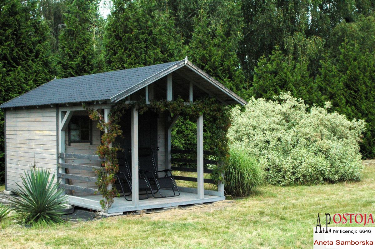 Na terenie działki domek "narzędziowy" z tarasem około 9 m2, zadaszony, inwestycja 2023r.
