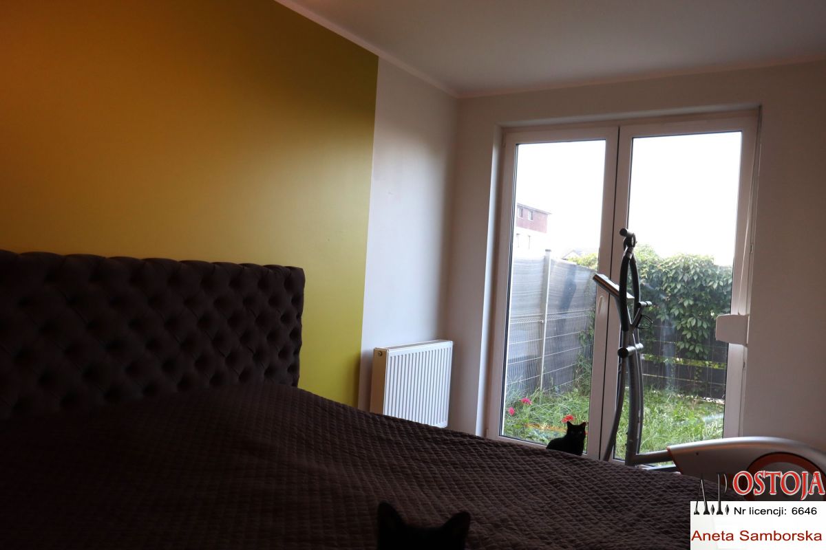 Okna PCV z roletami zewnętrznymi (sterowanie elektrycznie w salonie oraz ręcznie w sypialniach), gładź na ścianach, panele o wysokiej odporności na zarysowania.